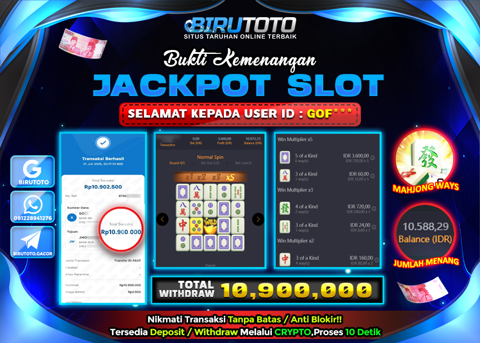 BIRUTOTO JACKPOT SLOT MAHJONG WAYS Rp.10.900.000 LUNAS