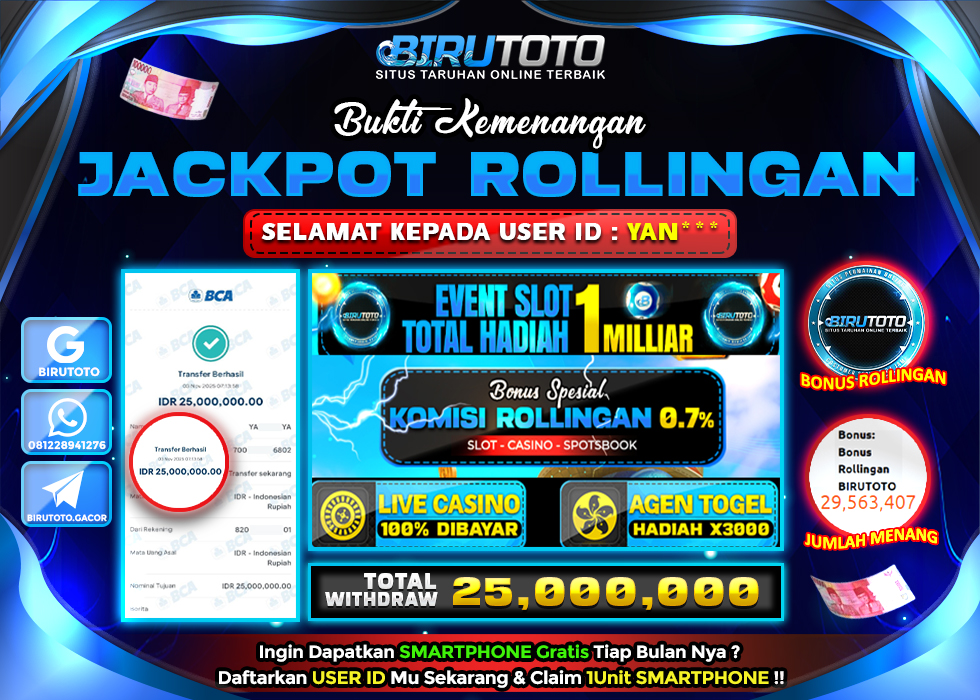 BIRUTOTO JACKPOT BONUS ROLIINGAN Rp.25.000.000 LUNAS