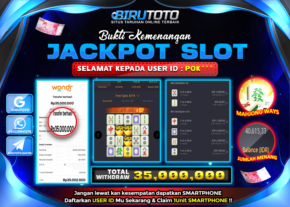 BIRUTOTO JACKPOT SLOT MAHJONG WAYS Rp.35.000.000 LUNAS
