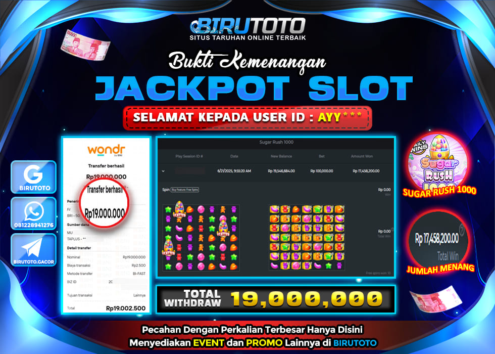 BIRUTOTO JACKPOT SLOT SUGAR RUSH 1000 Rp.19.000.000 LUNAS