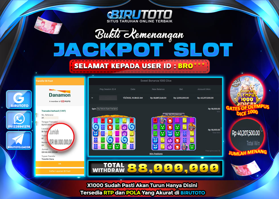 BIRUTOTO JACKPOT SLOT GATES OF OLYMPUS 1000 DICE Rp.88.000.000 LUNAS