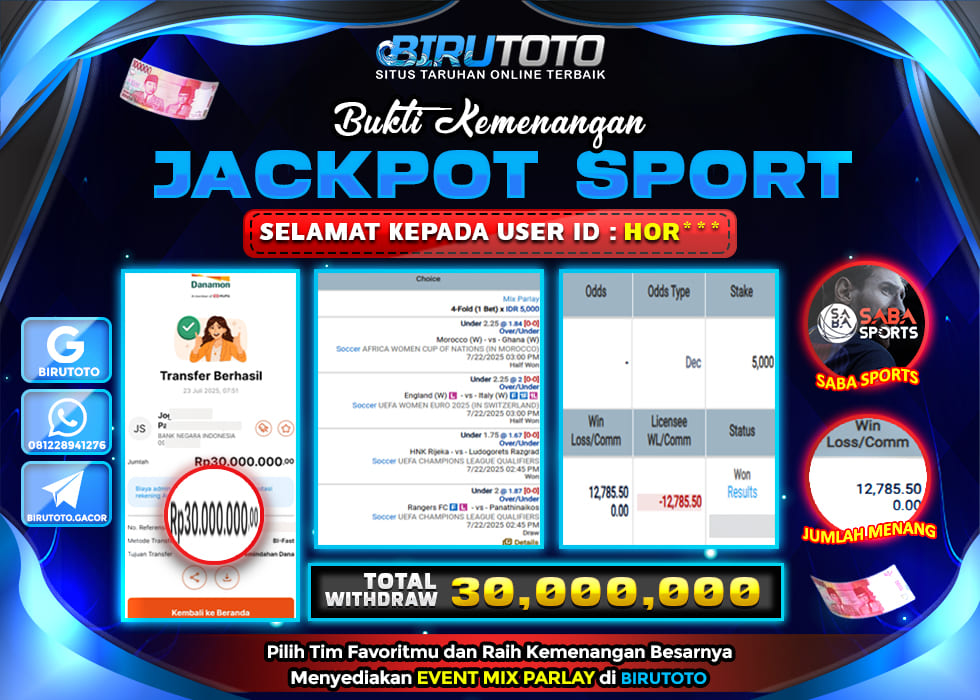 BIRUTOTO JACKPOT SPORT SABA SPORTS Rp.30.000.000 LUNAS
