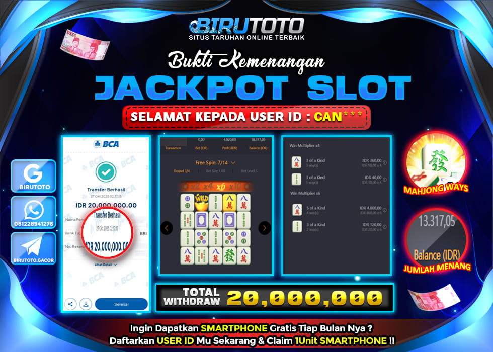 BIRUTOTO JACKPOT SLOT MAHJONG WAYS Rp.20.000.000 LUNAS
