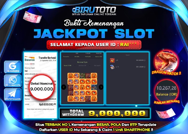BIRUTOTO JACKPOT SLOT DRAGON HATCH 2 Rp.9.000.000 LUNAS