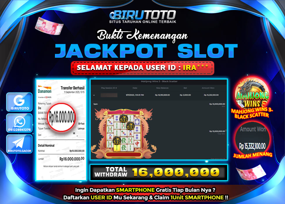 BIRUTOTO JACKPOT SLOT MAHJONG WINS 3 - BLACK SCATTER Rp.16.000.000 LUNAS