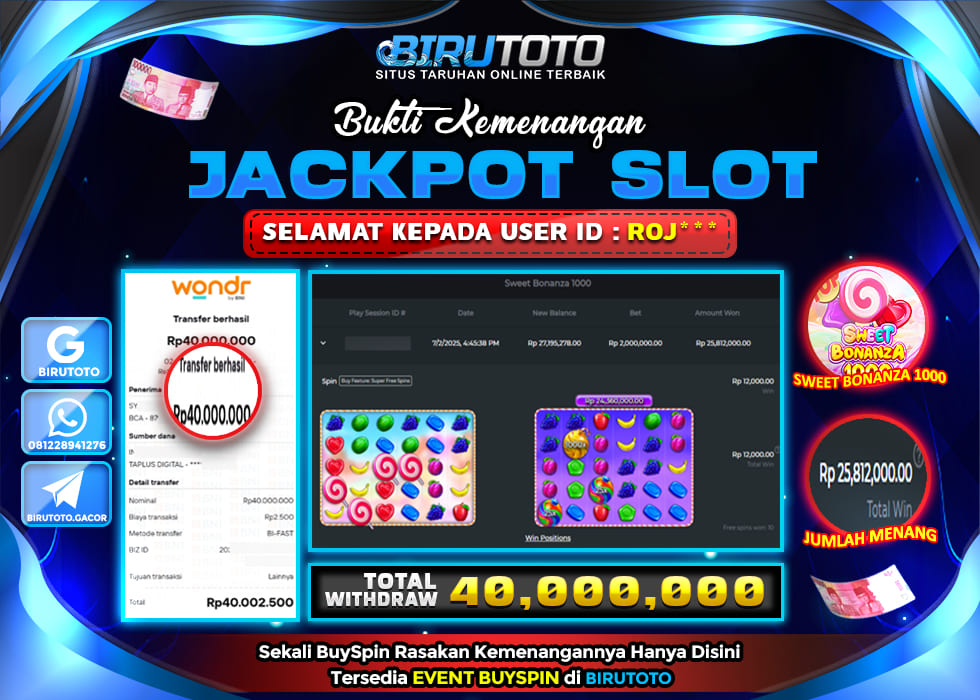 BIRUTOTO JACKPOT SLOT SWEET BONANZA 10000 Rp.40.000.000 LUNAS