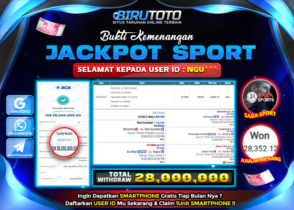 BIRUTOTO JACKPOT SABA SPORT MIX PARLAY Rp.28.000.000 LUNAS