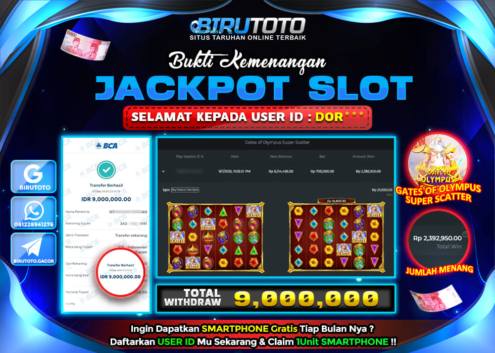 BIRUTOTO JACKPOT SLOT GATES OF OLYMPUS SUPER SCATTER Rp.9.000.000 LUNAS