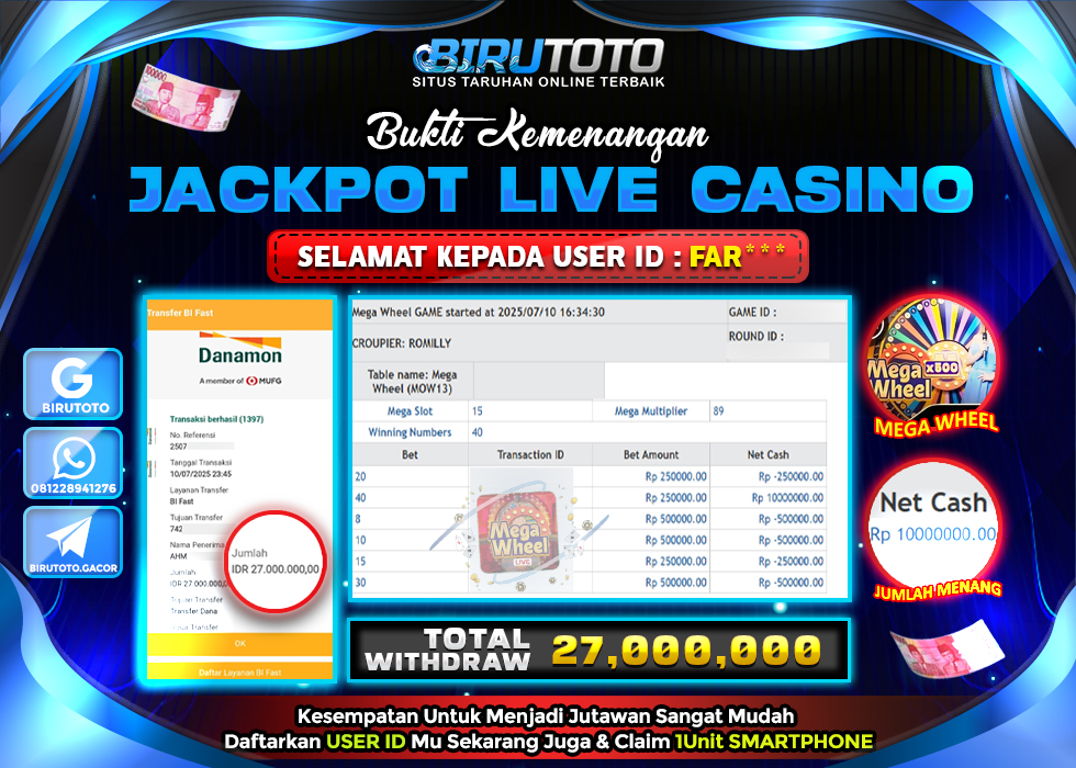 Selamat Kepada Member BIRUTOTO JA**** Telah Jackpot Di LIVE CASINO BACCARAT
