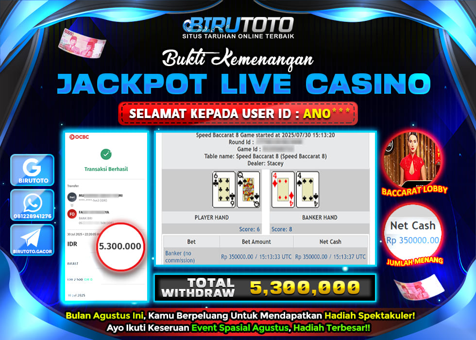 BIRUTOTO JACKPOT LIVE CASINO BACCARAT LOBBY Rp.5.300.000 LUNAS