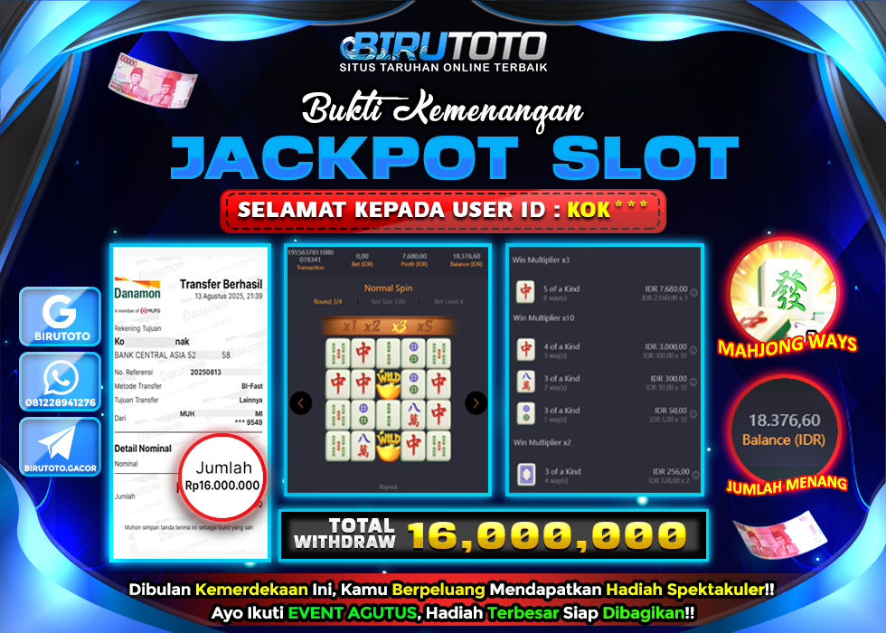 BIRUTOTO JACKPOT SLOT MAHJONG WAYS Rp.16.000.000 LUNAS