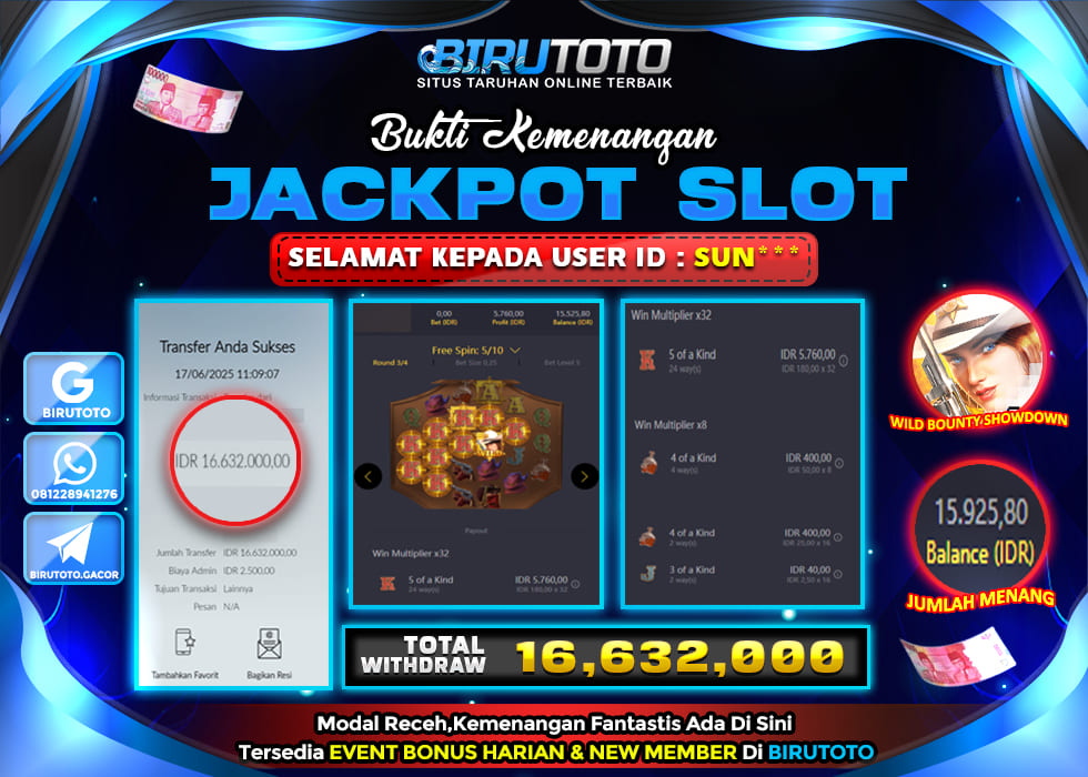 BIRUTOTO JACKPOT WILD BOUNTY SHOWDOWN Rp.16.632.000 LUNAS
