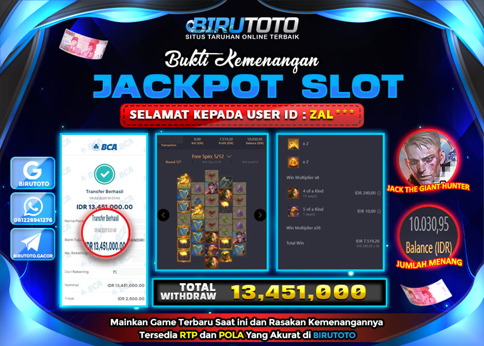 BIRUTOTO JACKPOT SLOT JACK THE GIANT HUNTER Rp.13.451.000 LUNAS