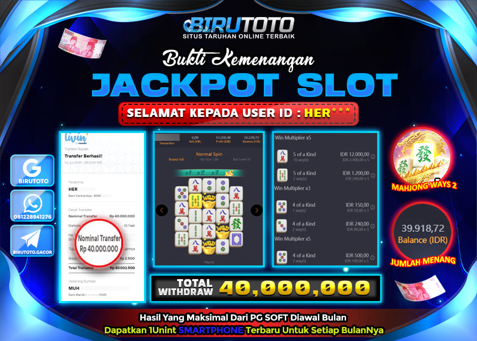 BIRUTOTO JACKPOT SLOT MAHJONG WAYS 2 Rp.40.000.000 LUNAS