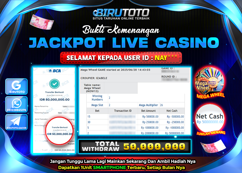 BIRUTOTO JACKPOT LIVE CASINO MEGA WHEEL Rp.50.000.000 LUNAS