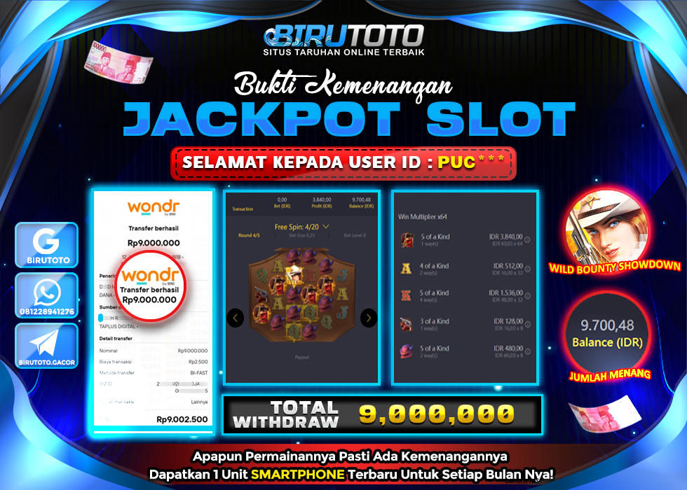 Selamat Kepada Member BIRUTOTO WI**** Telah Jackpot Di SLOT WILD BOUNTY SHOWDOWN