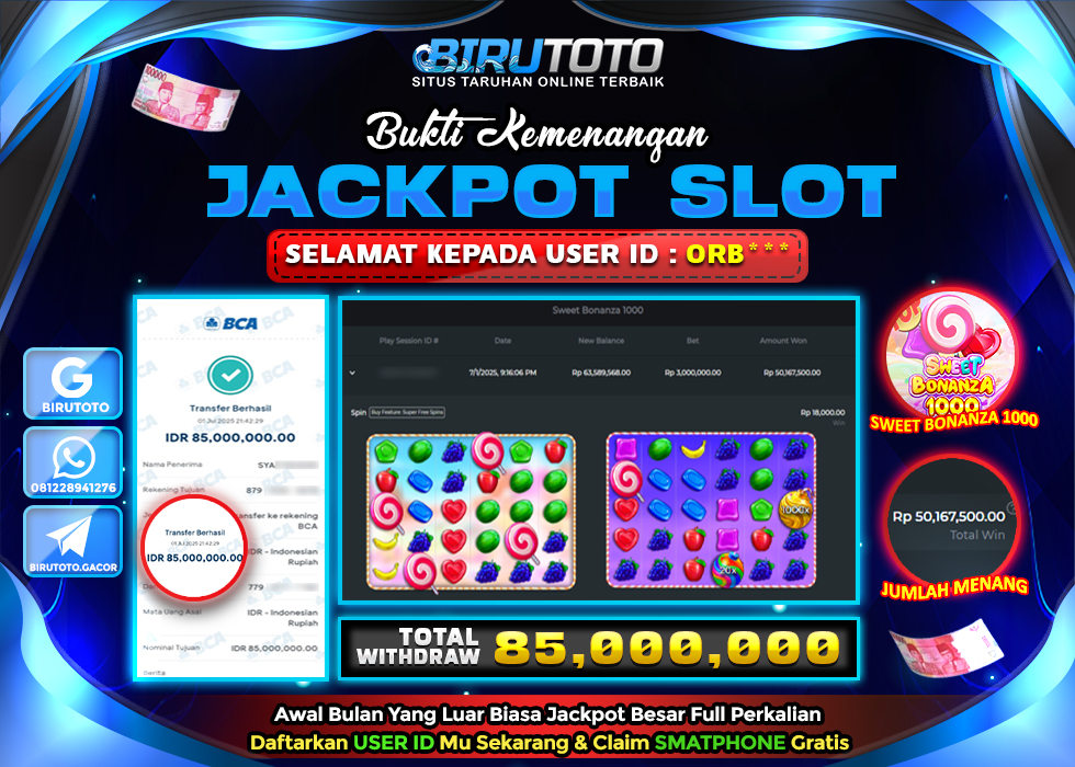 BIRUTOTO JACKPOT SLOT SWEET BONANZA 10000 Rp.85.000.000 LUNAS