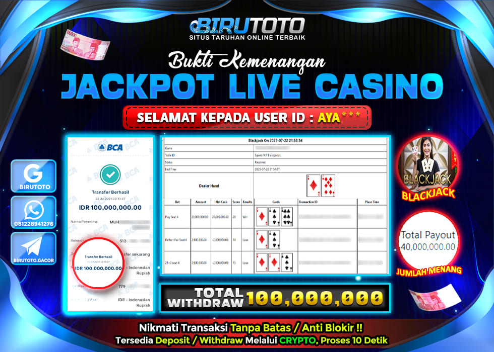 Selamat Kepada Member BIRUTOTO AY**** Telah Jackpot Di LIVE CASINO BLACKJACK