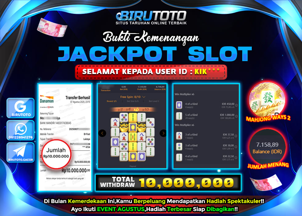 BIRUTOTO JACKPOT SLOT MAHJONG Rp.10.000.000 LUNAS