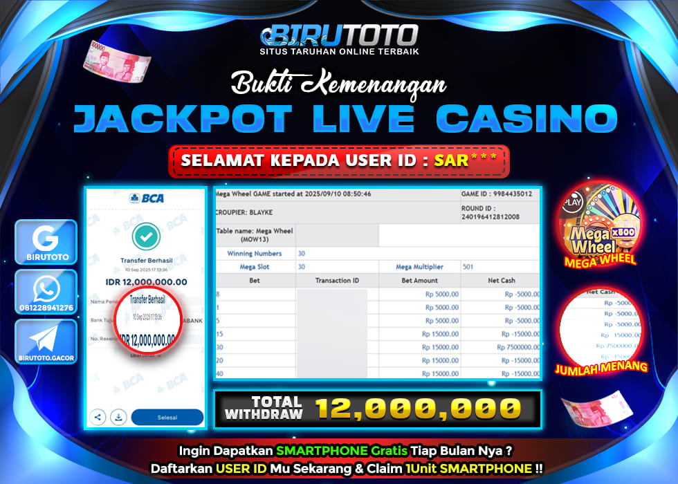 BIRUTOTO JACKPOT LIVE CASINO MEGA WHEEL Rp.12.000.000 LUNAS