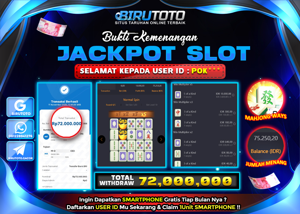 BIRUTOTO JACKPOT SLOT MAHJONG WAYS Rp.72.000.000 LUNAS