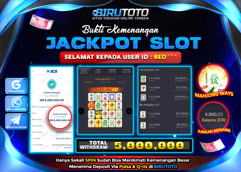 Selamat Kepada Member BIRUTOTO BL**** Telah Jackpot Di SLOT MAHJONG WAYS