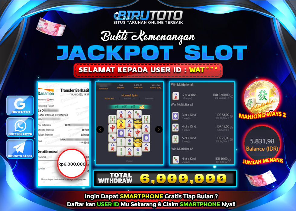 BIRUTOTO JACKPOT SLOT MAHJONG WAYS 2 Rp.6.000.000 LUNAS