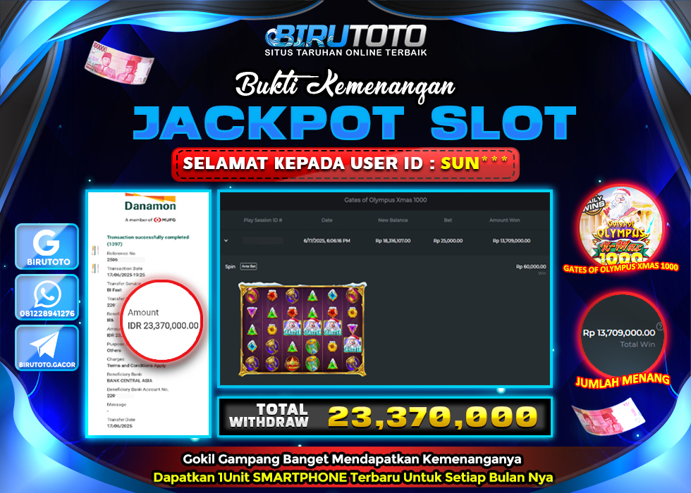BIRUTOTO JACKPOT SLOT GATES OF OLYMPUS XMAS 1000 Rp.23.370.000 LUNAS