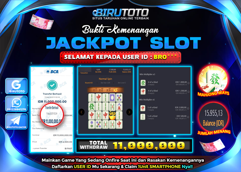 BIRUTOTO JACKPOT SLOT MAHJONG WAYS Rp.11.000.000 LUNAS