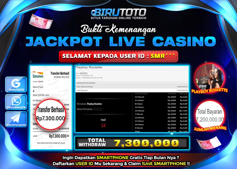 Selamat Kepada Member BIRUTOTO SM**** Telah Jackpot Di LIVE CASINO PLAYBOY ROULETTE
