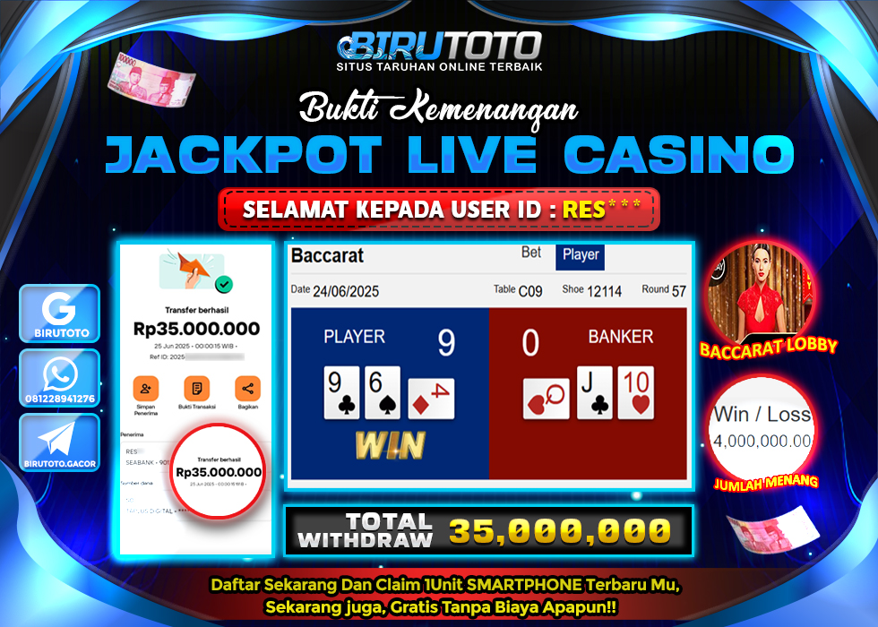 BIRUTOTO JACKPOT LIVE CASINO BACCARAT Rp.35.000.000 LUNAS