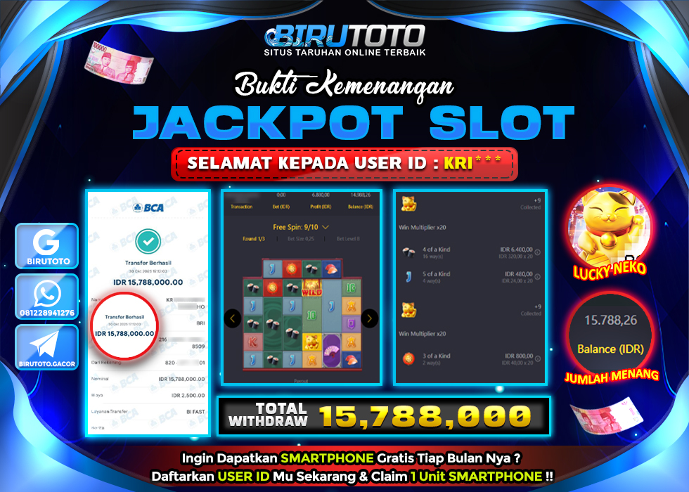 BIRUTOTO JACKPOT SLOT LUCKY NEKO Rp.15.788.000 LUNAS