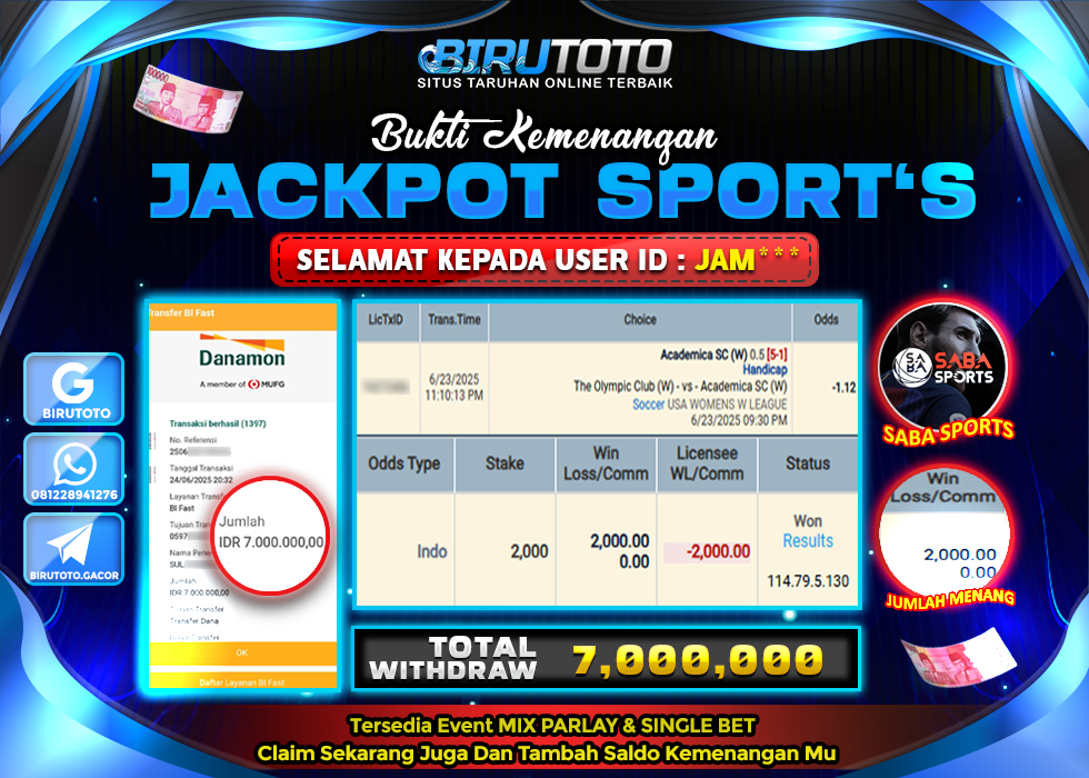 BIRUTOTO JACKPOT SABA SPORTS SEPAK BOLA Rp.7.000.000 LUNAS