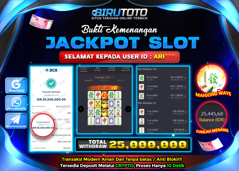 BIRUTOTO JACKPOT SLOT MAHJONG WAYS Rp.25.000.000 LUNAS