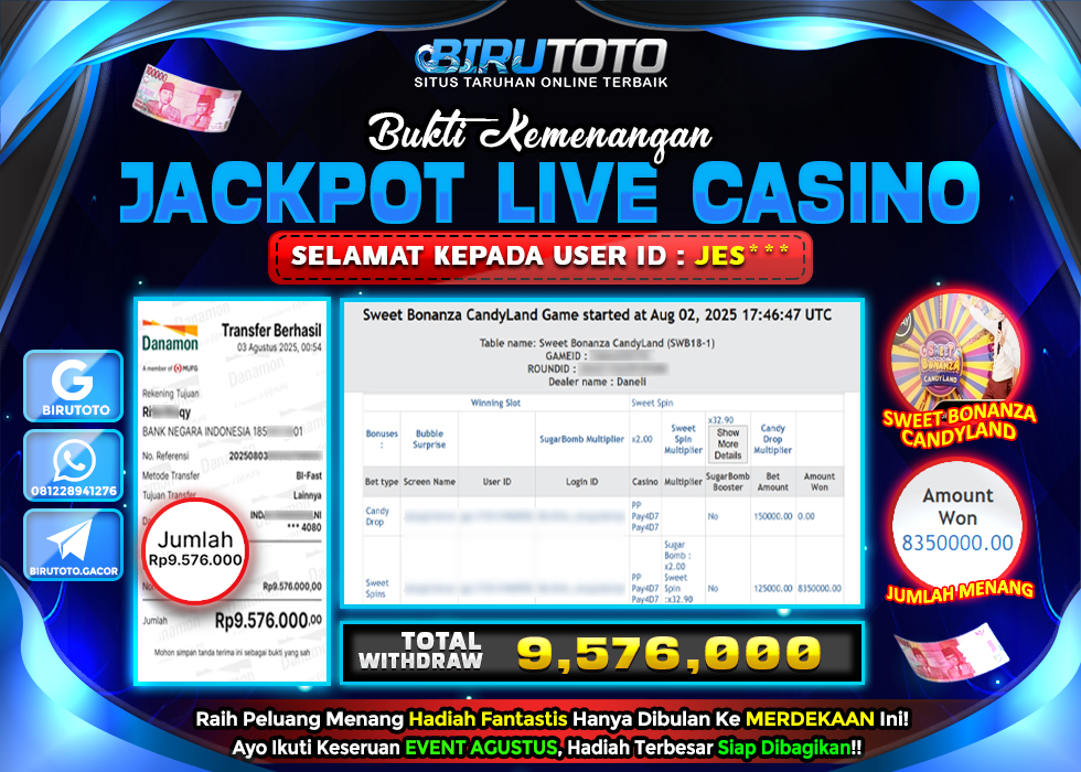BIRUTOTO JACKPOT LIVE CASINO SWEET BONANZA CANDYLAND Rp.9.576.000 LUNAS