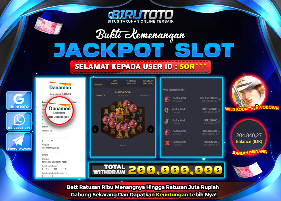BIRUTOTO JACKPOT WILD BOUNTY SHOWDOWN Rp.200.000.000 LUNAS