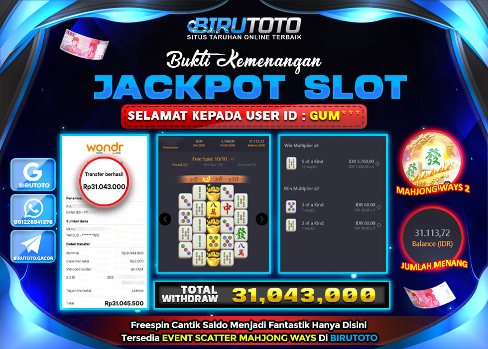 BIRUTOTO JACKPOT MAHJONG WAYS 2 Rp.31.043.000 LUNAS