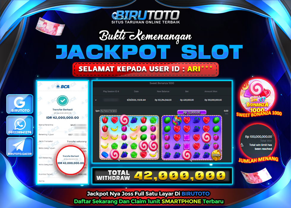 BIRUTOTO JACKPOT SLOT SWEET BONANZA 1000 Rp.42.000.000 LUNAS