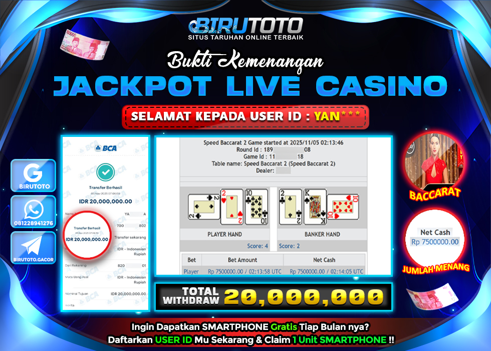 Selamat Kepada Member BIRUTOTO YA**** Telah Jackpot Di LIVE CASINO BACCARAT