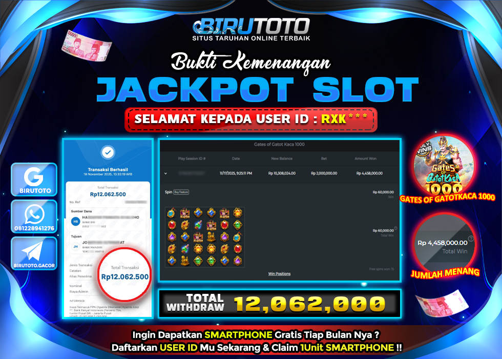 BIRUTOTO JACKPOT SLOT GATES OF GATOT KACA 1000 Rp.12.062.000 LUNAS