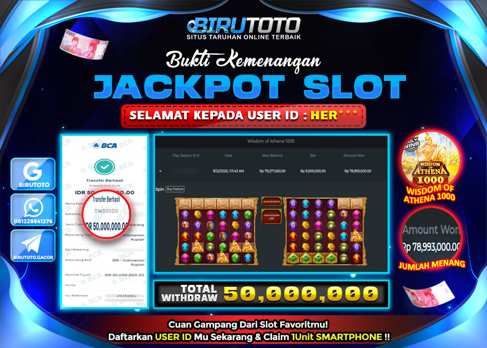 BIRUTOTO JACKPOT SLOT WISDOM OF ATHENA 1000 Rp.50.000.000 LUNAS