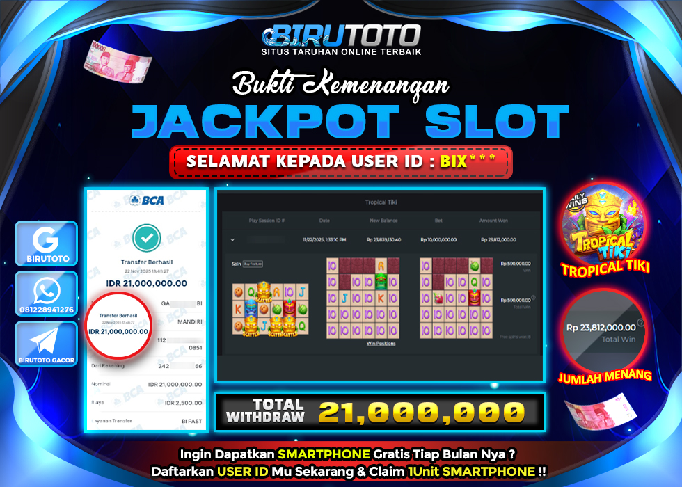 BIRUTOTO JACKPOT SLOT TROPICAL TIKI Rp.21.000.000 LUNAS