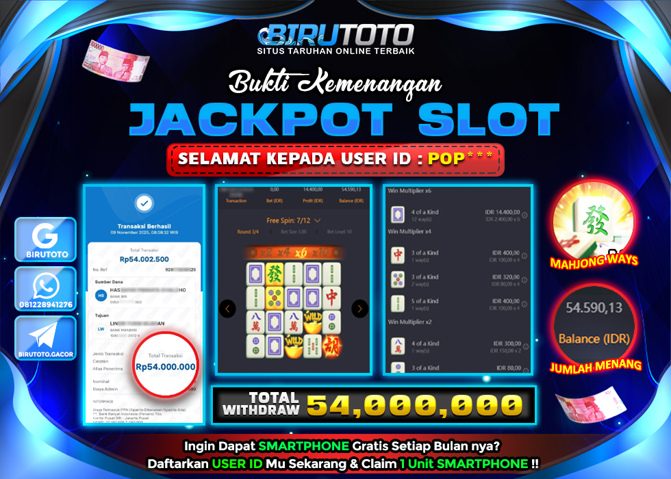 BIRUTOTO JACKPOT SLOT MAHJONG WAYS Rp.54.000.000 LUNAS