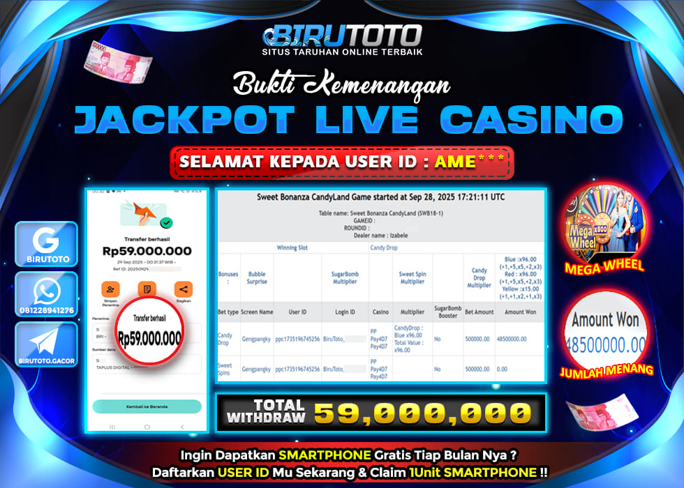 BIRUTOTO JACKPOT LIVE CASINO MEGA WHEEL Rp.59.000.000 LUNAS