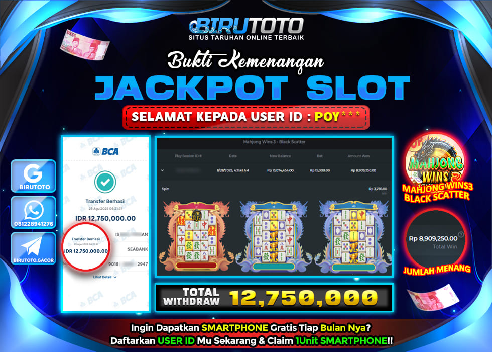 BIRUTOTO JACKPOT SLOT MAHJONG WINS 3 - BLACK SCATTER Rp.12.750.000 LUNAS