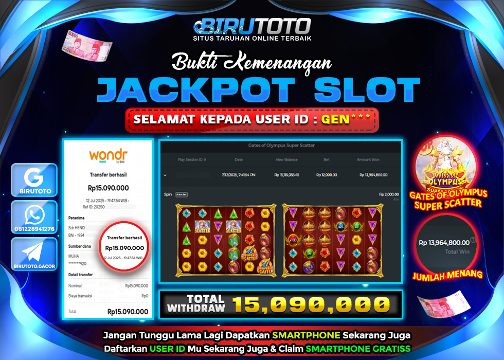 Selamat Kepada Member BIRUTOTO GE**** Telah Jackpot Di SLOT GATES OF OLYMPUS SUPER SCATTER