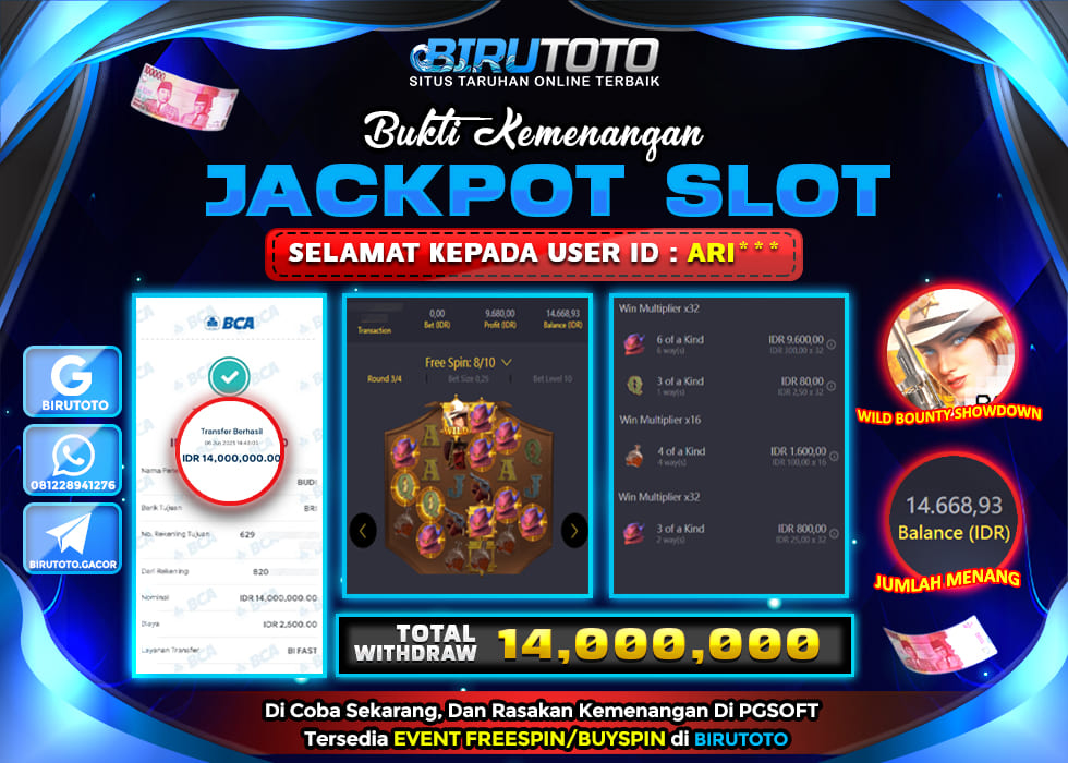 BIRUTOTO JACKPOT SLOT WILD BOUNTY SHOWDOWN Rp.14.000.000 LUNAS
