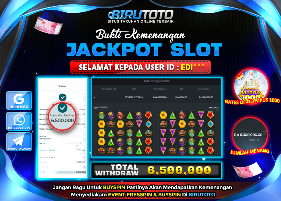 BIRUTOTO JACKPOT SLOT GATES OF OLYMPUS 1000 Rp.6.500.000 LUNAS