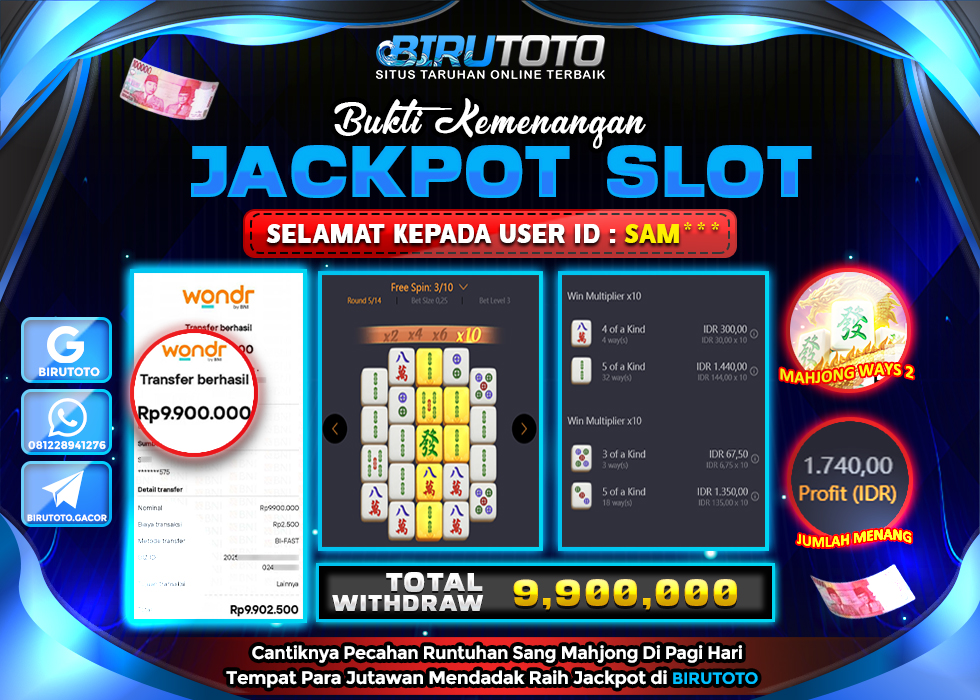 Selamat Kepada Member BIRUTOTO DI**** Telah Jackpot Di SLOT MAHJONG WAYS