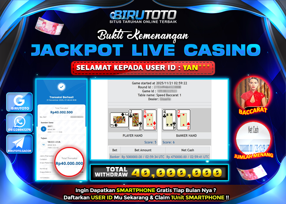 Selamat Kepada Member BIRUTOTO YA**** Telah Jackpot Di LIVE C